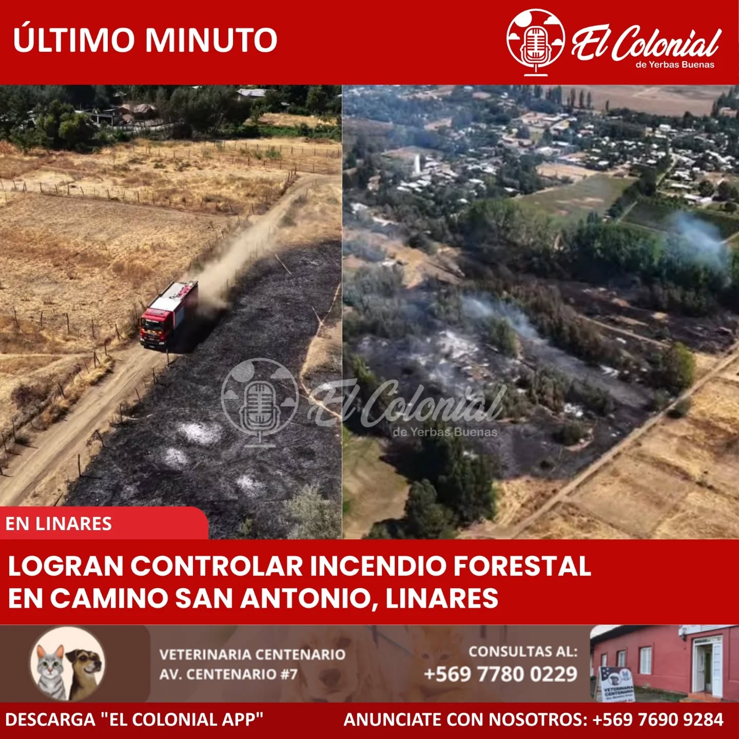La emergencia ya se encuentra controlada, manteniéndose equipos en el lugar para evitar rebrotes y control absoluto del siniestro.
